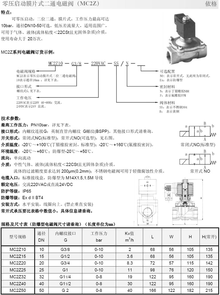 零压启动膜片式二通电磁阀(请点击查看详情)