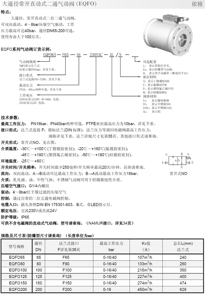 大通径常开直动式二通气动阀(EQFO)(请点击查看详情)