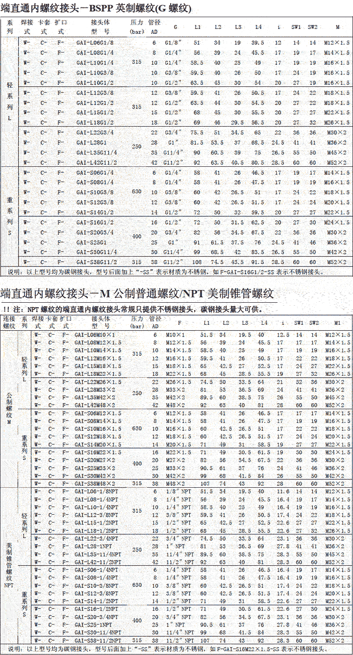 端直通接头GAI(请点击查看详情)