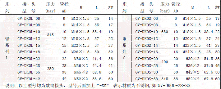 带活螺母直通接头GV-DKO(请点击查看详情)