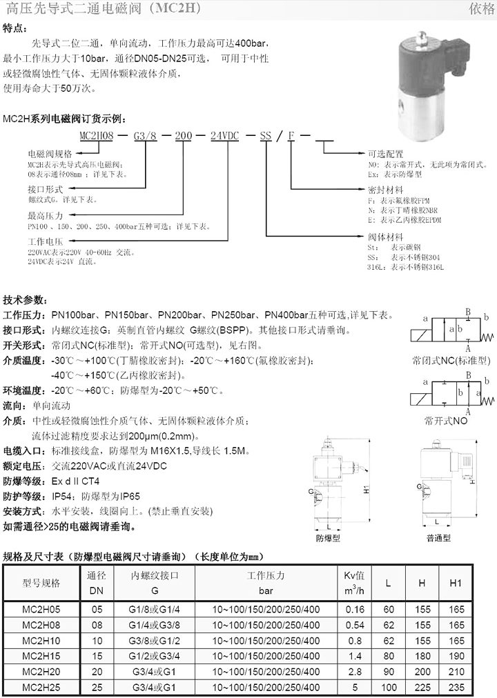 高压先导式二通电磁阀(MC2H)(请点击查看详情)